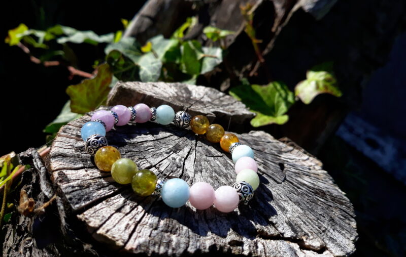 На тему раскрытия талантов и способностей, гармонии и чистоты, укрепления внутренней силы. Камни: берилл, кунцит, гроссуляр (зеленый гранат)