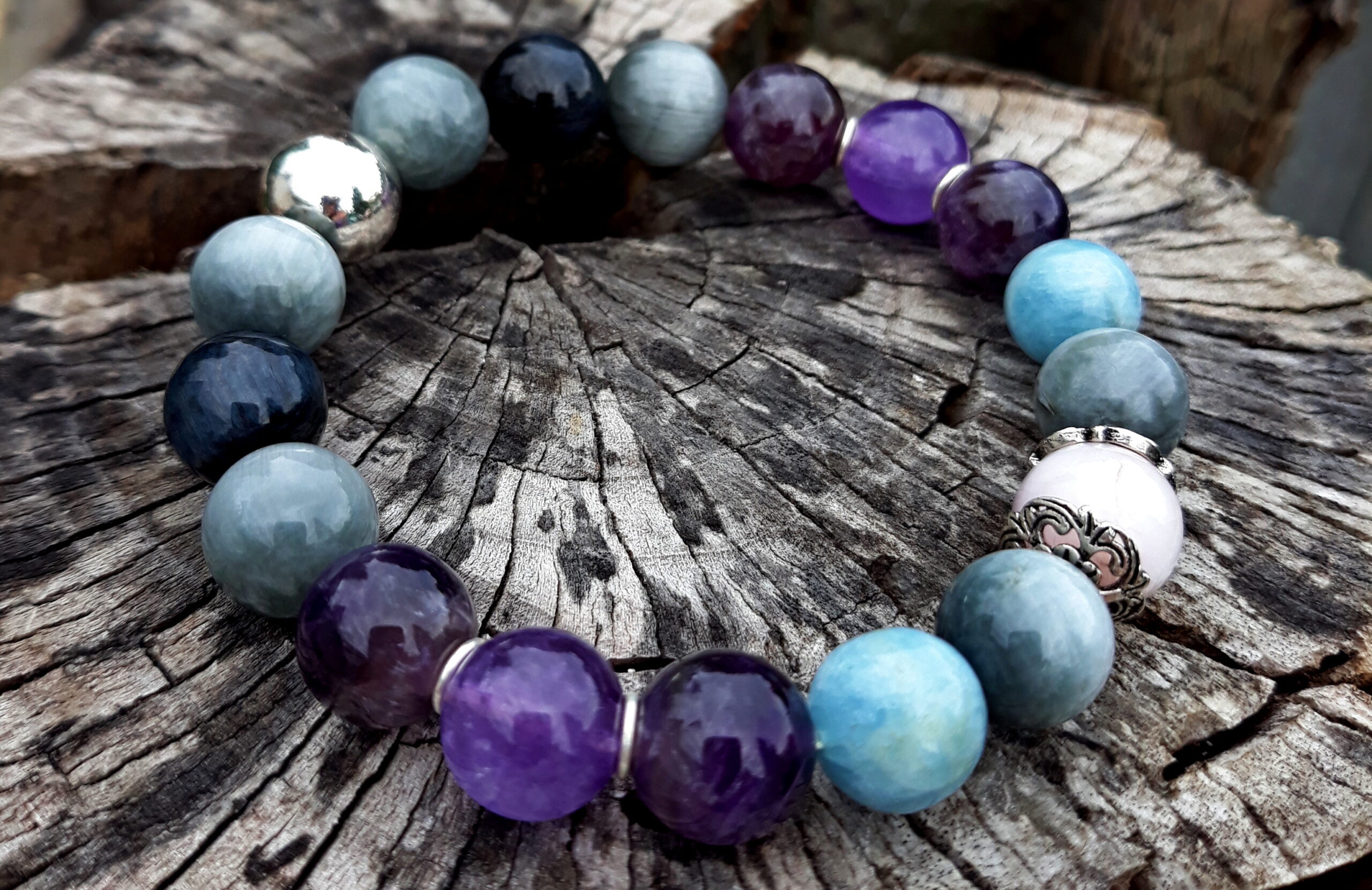 На тему духовного развития, осознания своего потенциала и связи сознания с подсознанием. Камни: аметист, аквамарин, хризоберилл, соколиный глаз.