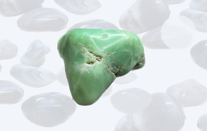 Полудрагоценный и поделочный камень, разновидность кварца и халцедона, содержащая небольшое количество никеля. Хризопраз представляет собой скрытокристаллический агрегат, состоящий из неразличимых невооружённым глазом мелких кристаллических зёрен, видимых только под микроскопом. Формула: SiO2. Камень здоровья и денег. Помогает уравновешивать финансовый поток и накапливать капитал. Благоприятно воздействует на работу сердца.